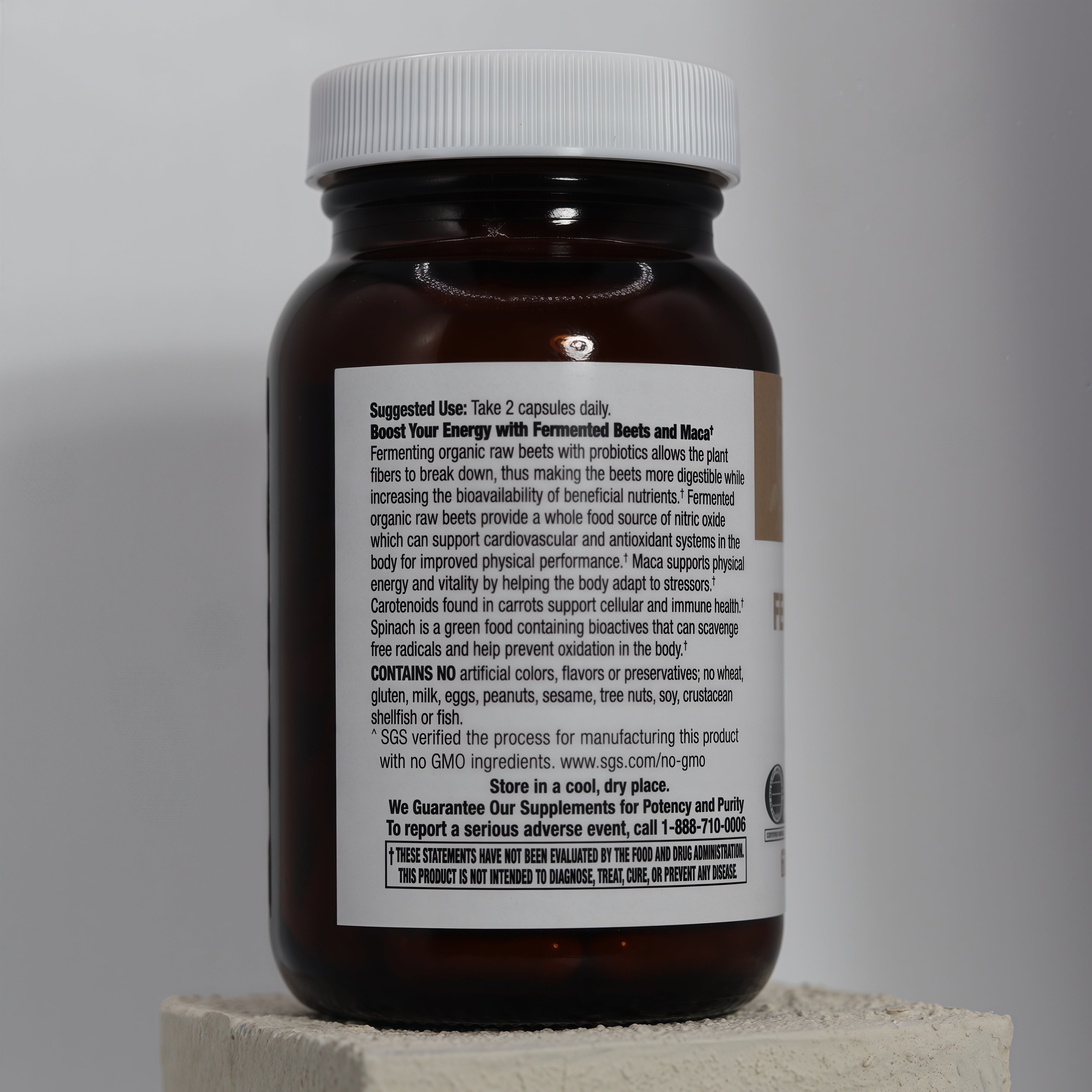 Our capsules go through a unique fermentation process that enhances nutrient absorption, making it easier for your body to utilize the powerful benefits of beets and maca. This means faster, more noticeable results compared to standard beet supplements.